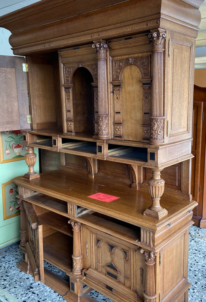 Ein altes Eichenbuffet – mit Schubladen – das in keine Wohnung mehr passt